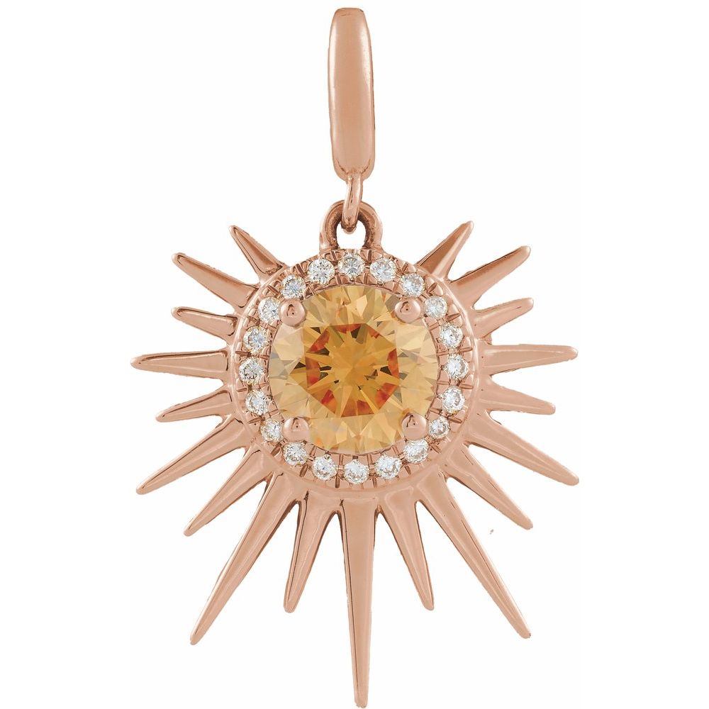 14CT GOLD CITRINE & DIAMOND HALO SUNBURST PENDANT CHARM