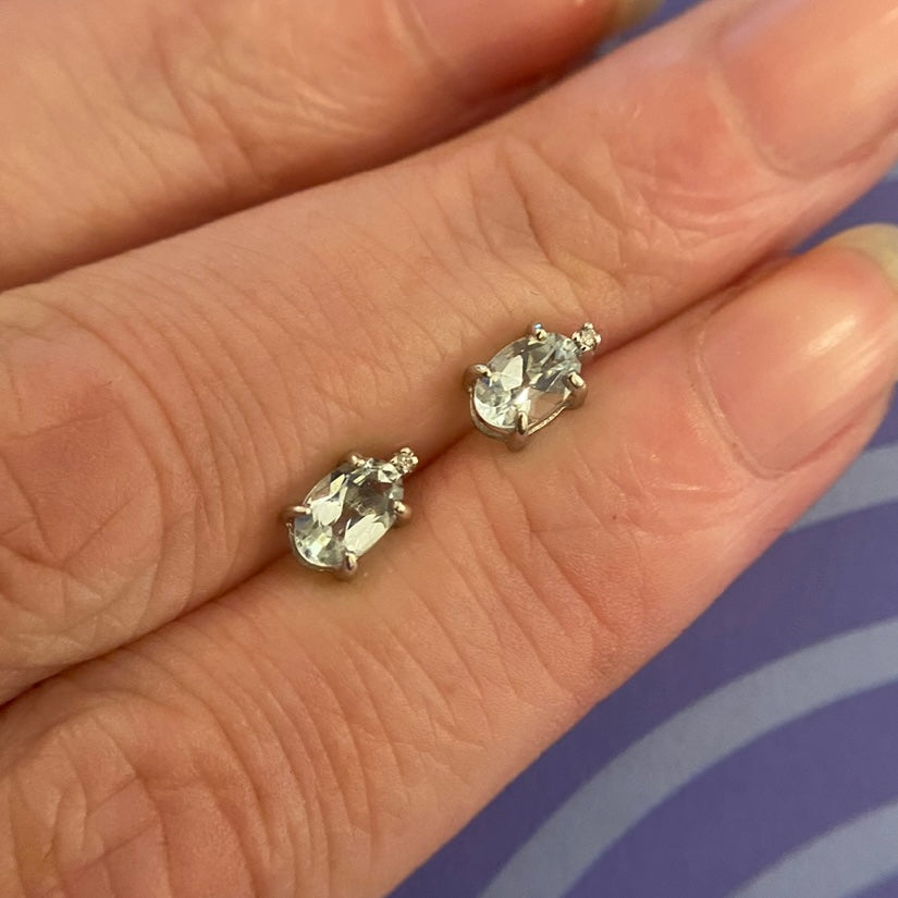 9CT WHITE GOLD OVAL AQUAMARINE & DIAMOND STUDS